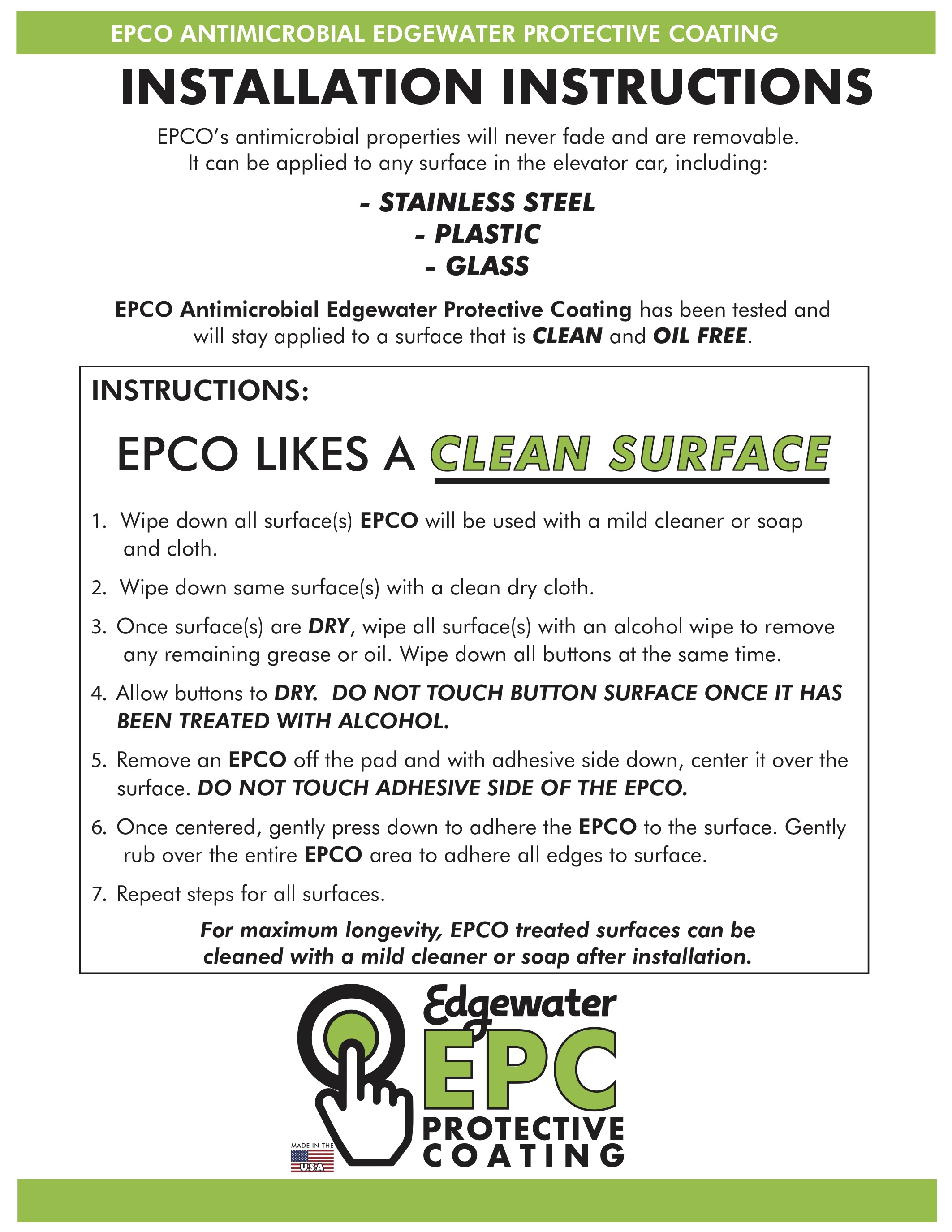 EPC Antimicrobial Edgewater Protective Coating has been tested and will stay applied to a surface that is clean and oil free .